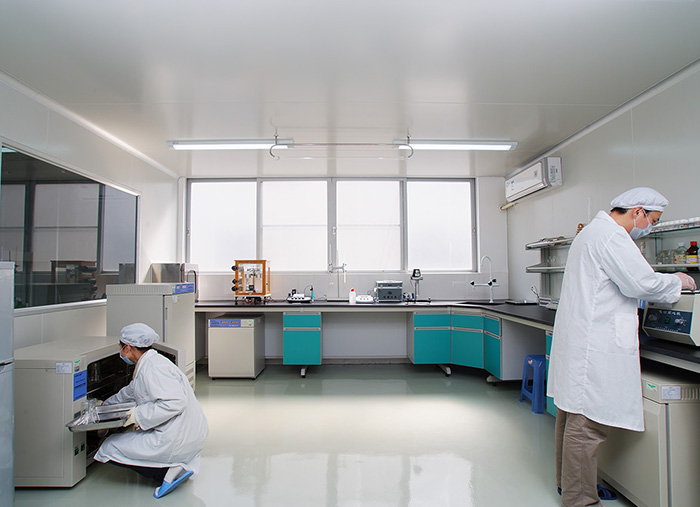 工廠按照GMP生產標準建設,參照美聯邦標準FS209E以及日本JIS(9920-1989)標準進行設計建造。6S管理原則,OEC工作法,高標準的生化研究室,確保技術優勢所需硬件要求。